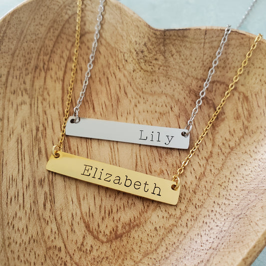 Horizontal Bar Necklace Printed Name