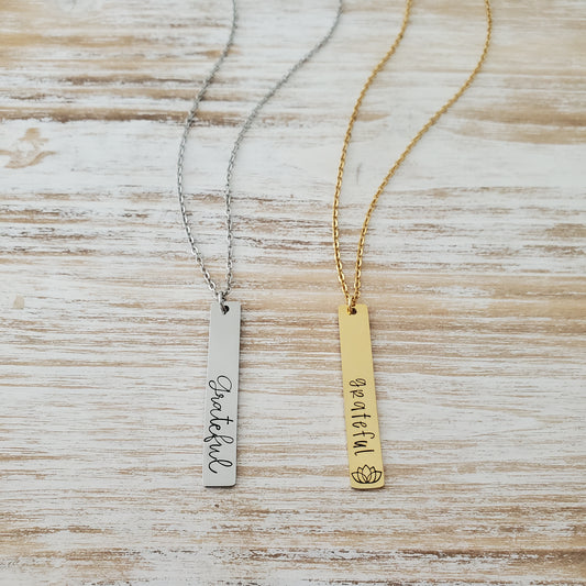 Vertical Bar Necklace 'grateful'