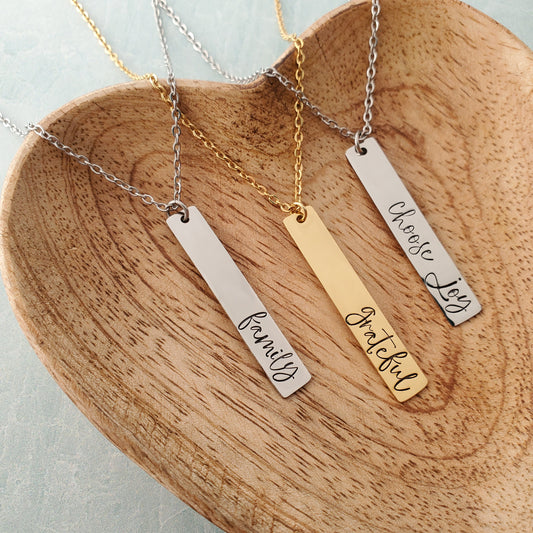 Vertical Bar Necklace with bold script